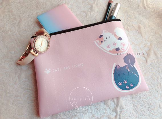 Aesthetic faux leather pouch with cute liquid cats and their soft jelly paws ♡ You can use this pouch as a pencil case, makeup bag, and more! (photo to be updated tonight)