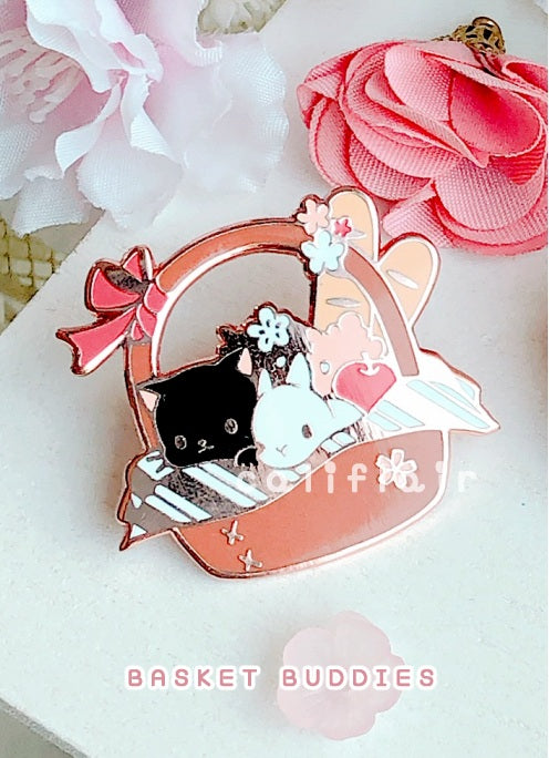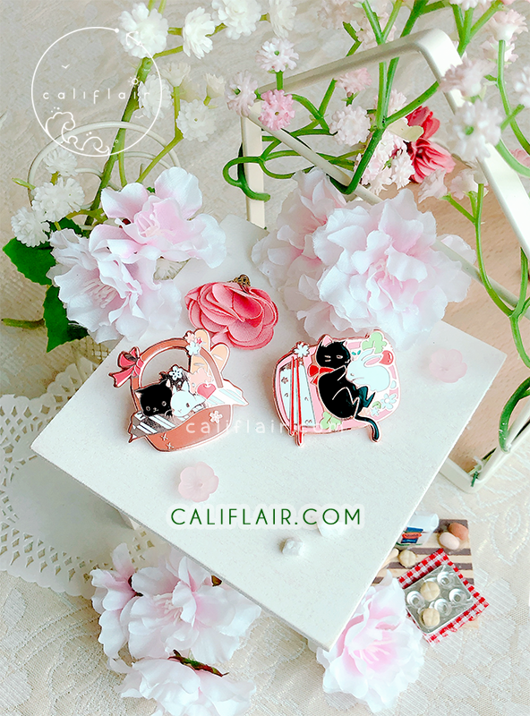 One of the June CaliPins, with Picnic Day theme 🐱🐰 The pin features a meowbun duo flopped in a picnic basket with baguettes and fluffy flowers!