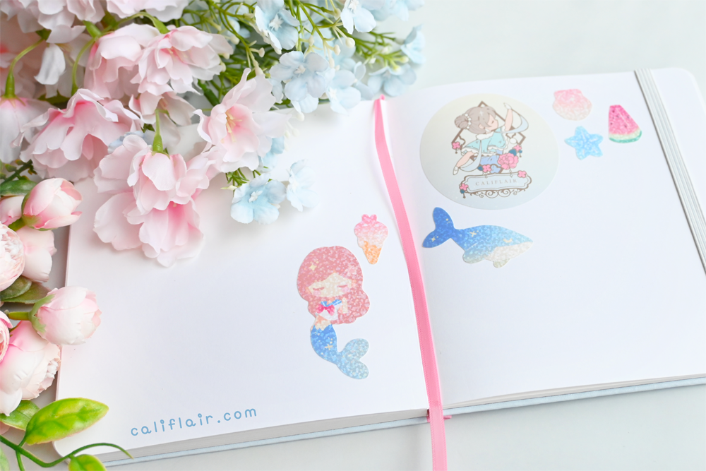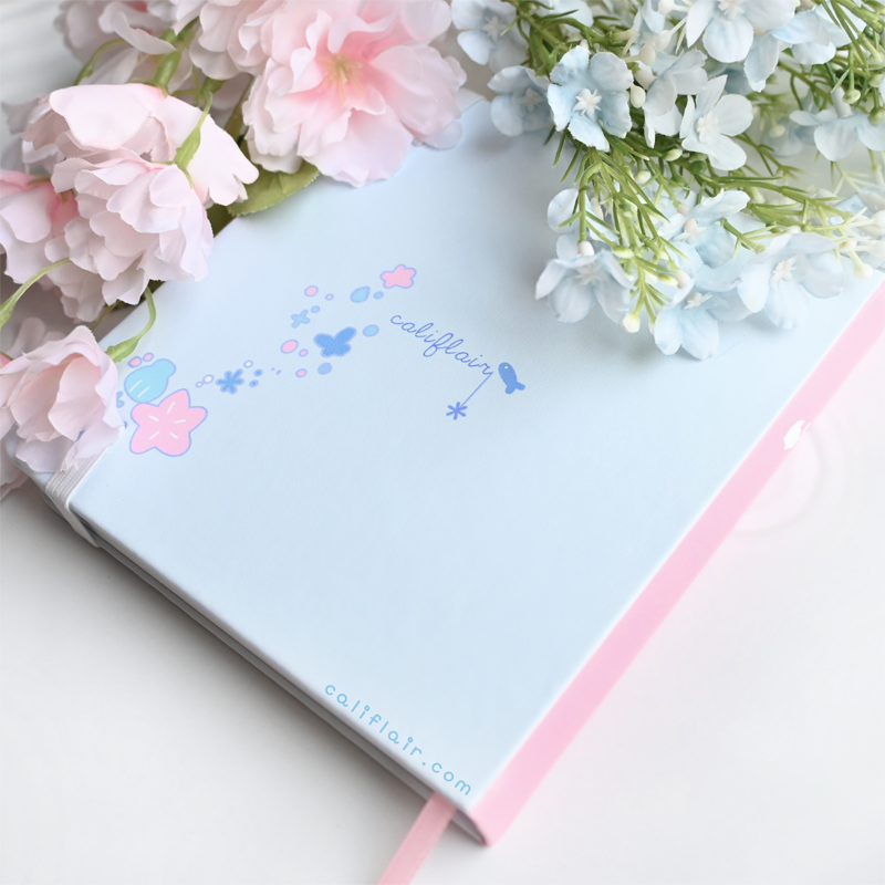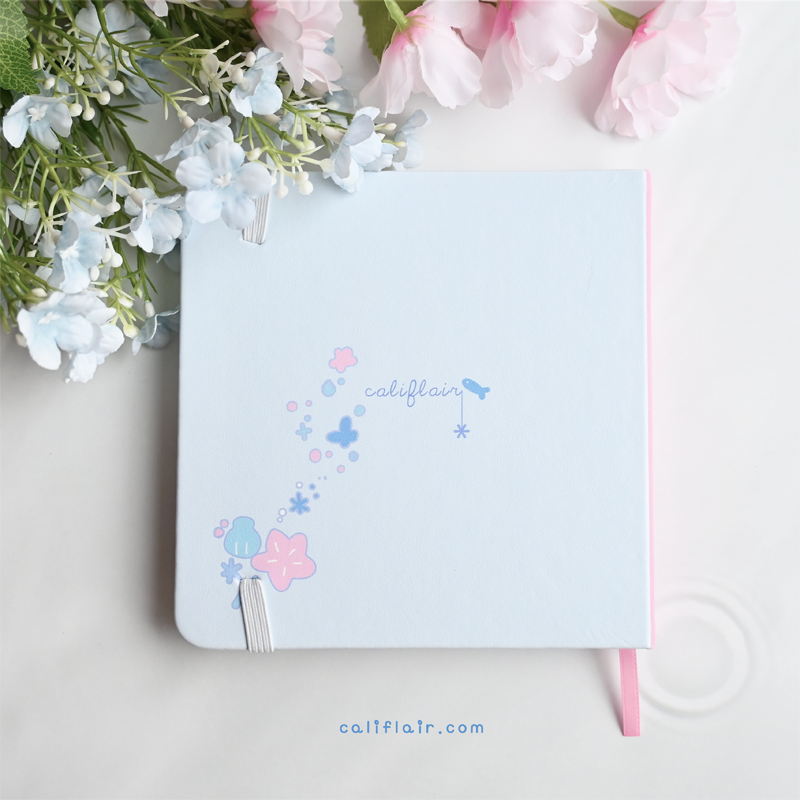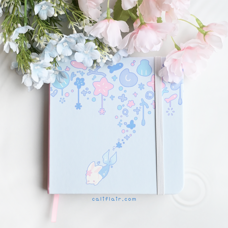 A sturdy, faux leather hard-cover notebook, in square dimension! Features a pastel blue and a cute sea bunny ♡ Log your sketches, writing ideas, self notes, and more~
