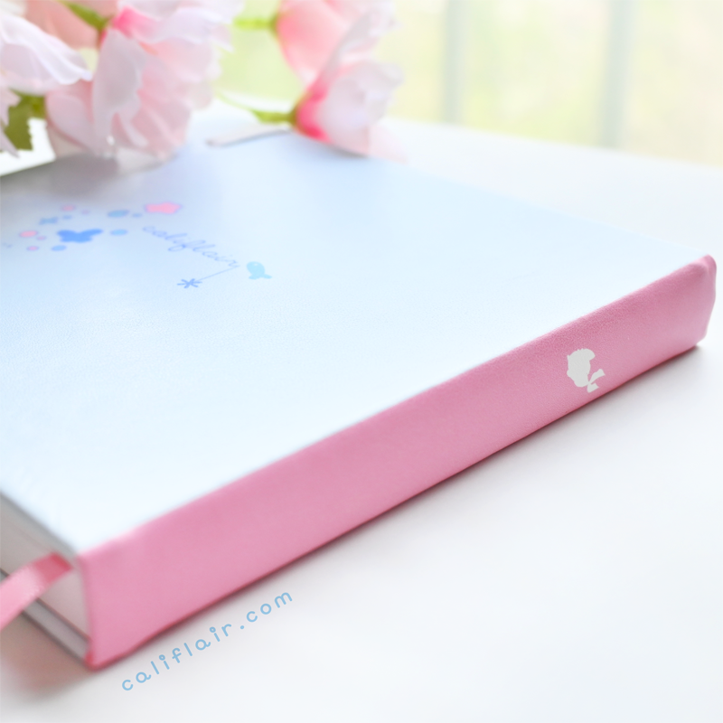 Includes anelastic band for easy closure & a pastel pink fabric band for bookmarking pages