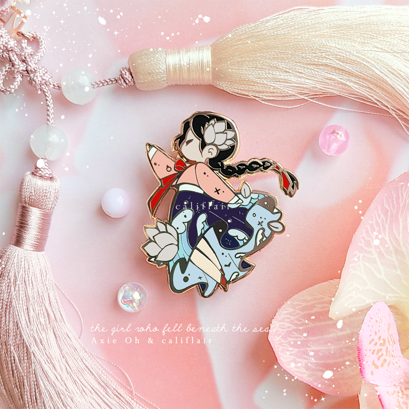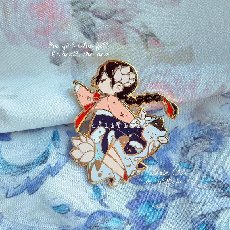This pin was a preorder exclusive gift designed for talented Axie Oh’s YA fantasy novel, The Girl Who Fell Beneath the Sea (2022). Now it can be purchased separately!